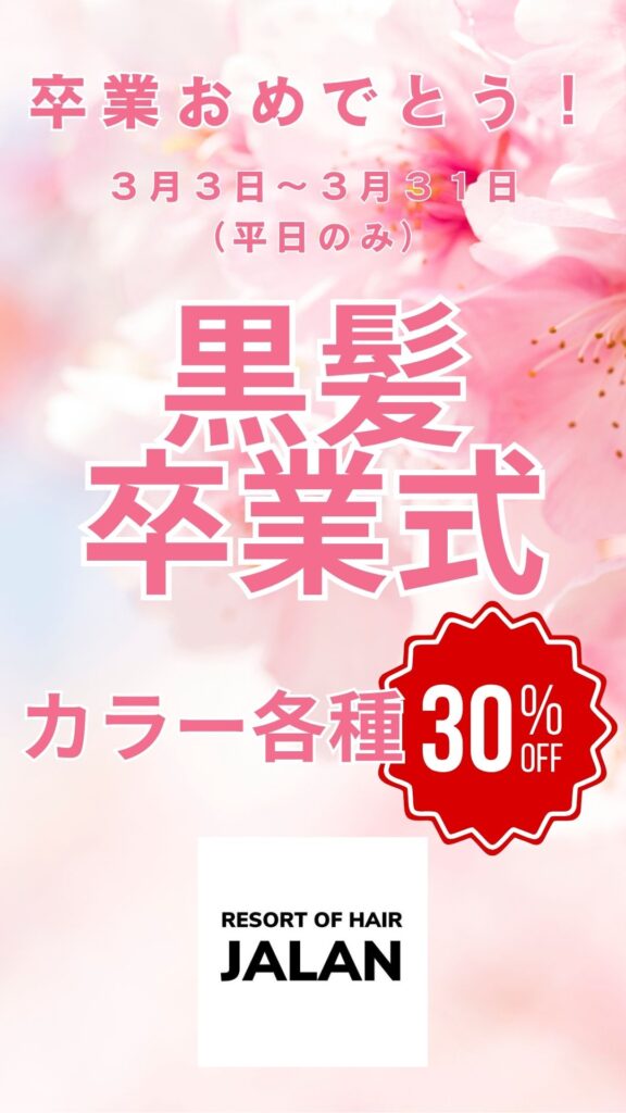 ジャランでは卒業を迎え新しい髪色で新生活を迎えたいという皆様に向けてのキャンペーン
